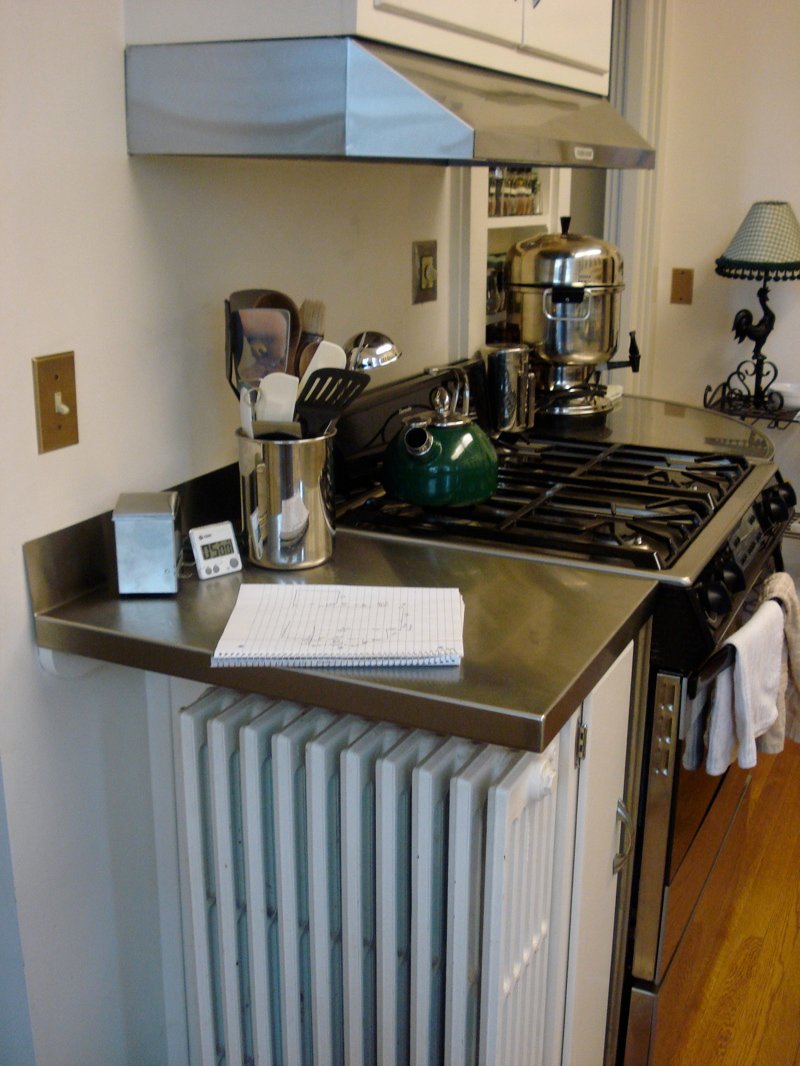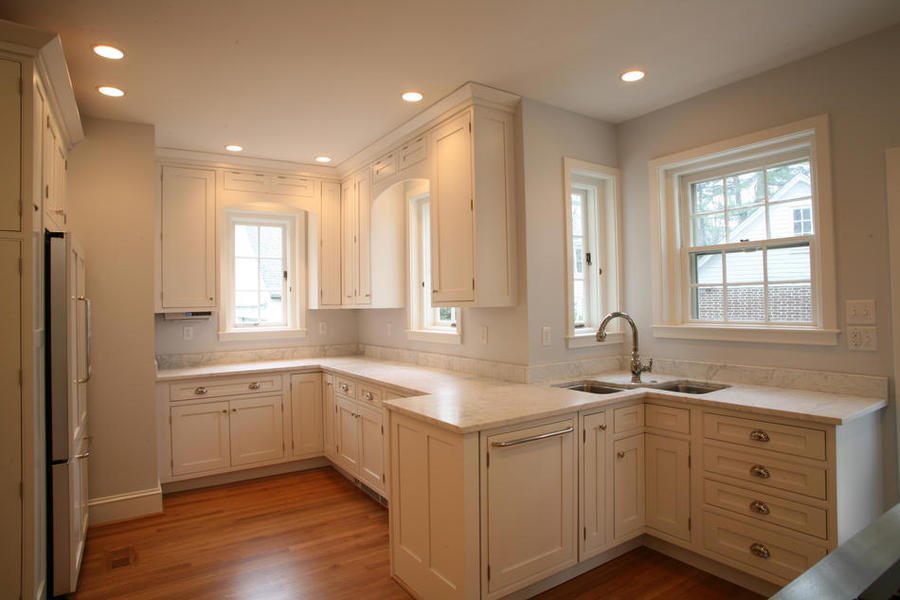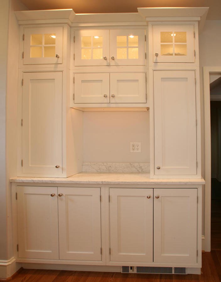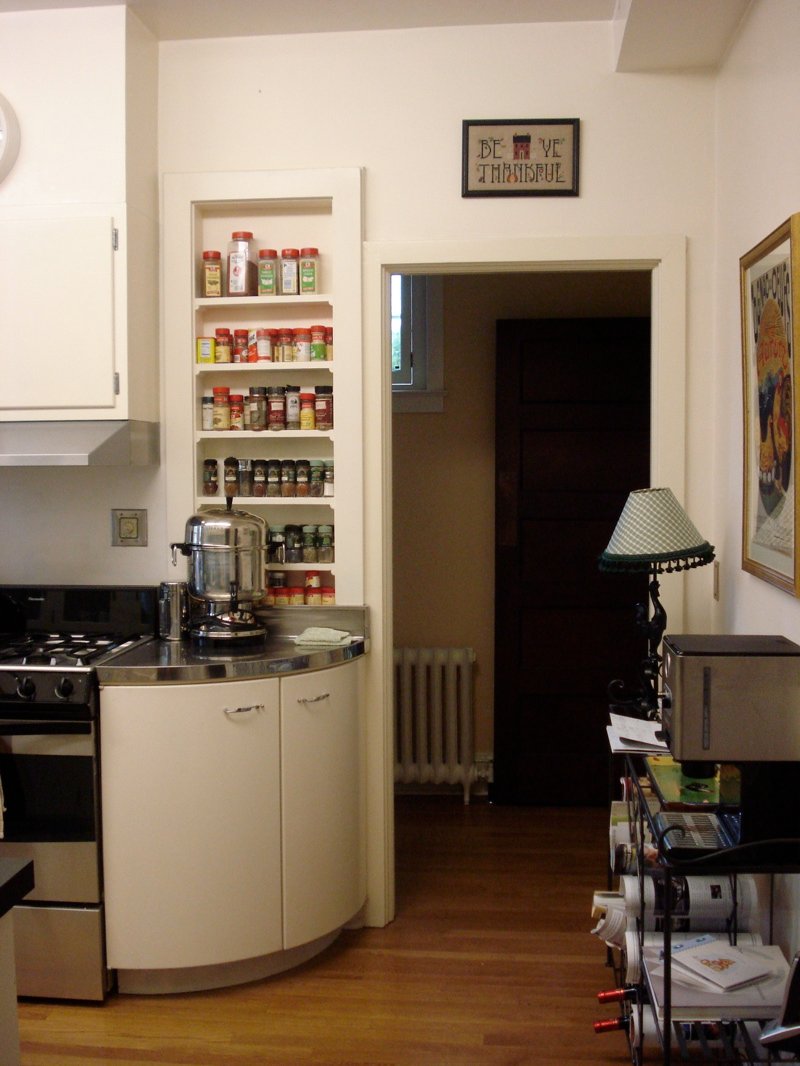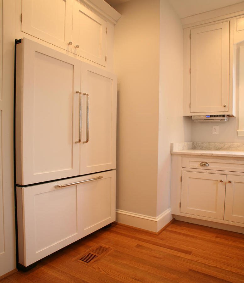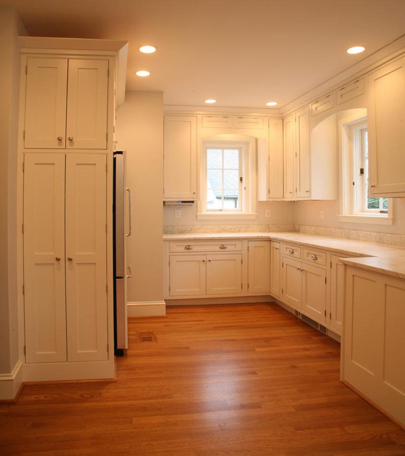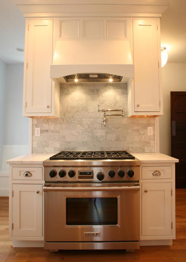 This beautiful kitchen was created with the Homeowners love of good food and pastry in mind. This kitchen features new hardwood floors, hidden structural beam in ceiling, honed marble countertops, a banquette, commercial appliances, toe kick radiators, solid wood cabinetry, custom range hood and range pot filler. The pictures to follow are the before shots.